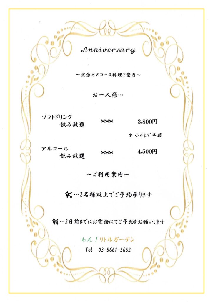 料金は、「コース料理お一人様3,800円(ソフトドリンク飲み放題付)+別途貸切料金」となります。(税込)