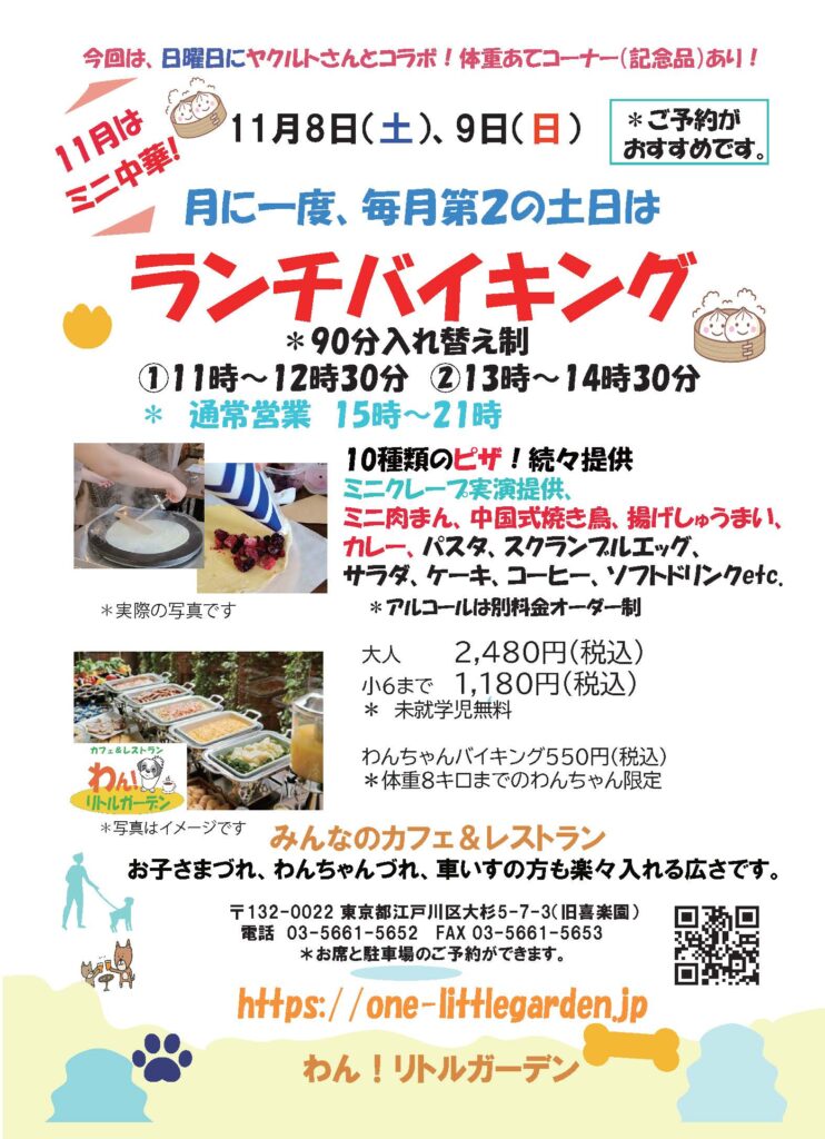 11月のランチバイキング受付中!11月8日(土)、9日(日)!