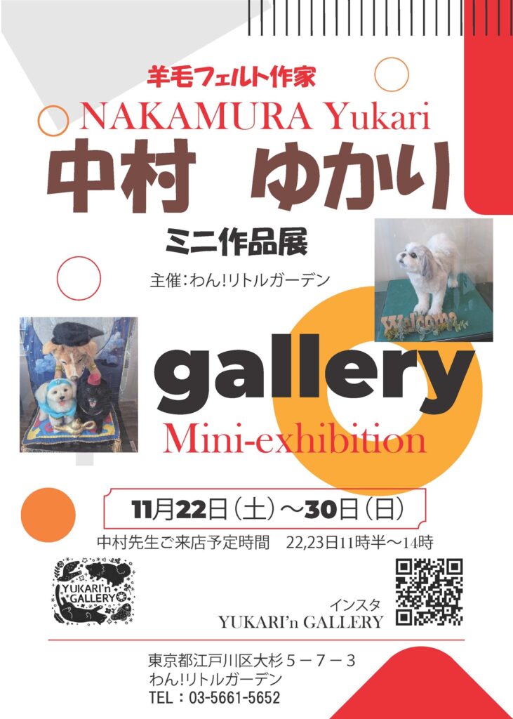 【ご好況につき延長】羊毛フェルト作家中村ゆかりミニ作品展  11月30日まで開催
